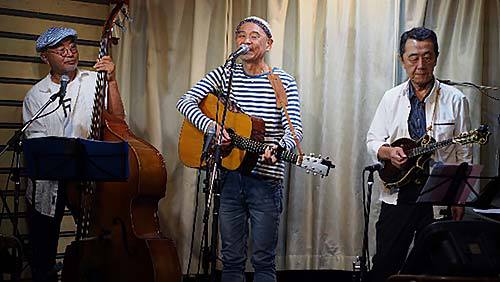 さて、第262回のコンサートは、アコースティックバンド『真思惟(まーしい)&グラスフォーカーズ』の皆さんをお招きして、坂本九の懐かしいナンバーを中心としたポップスのプログラムをお届けします。ヴォーカルの真思惟(まーしい)さんの歌声は柔らかで温かみがあり、グループのプロフィールにも書かれているフォークソング、抒情歌、懐メロなどのジャンルにぴったりで、脇を固めるAKジョッシュさんのフラットマンドリン、ハッピーさんのウッドベースの音色と相まって、ほっこりした雰囲気を醸し出します。九ちゃんの名曲たちがどんな形で舞い降りるのかとても楽しみです。どうぞご期待ください。