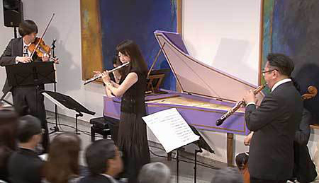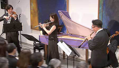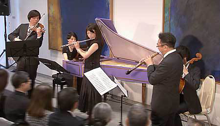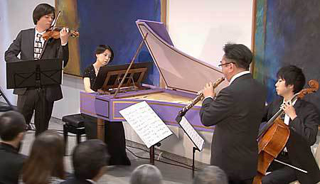 令和初にふさわしく、今回は当コンサートでもおなじみのヴァイオリンのロマン・フラニチカさん、オータムフェスタでコンサートのコーディネイトをしていただいておりますフルートのフィンダ志保子さん、そしてオーボエの徳田 振作さん、チェロの三河 慶史郎さん、チェンバロの上薗 未佳さんをお招きしてバロック音楽をお楽しみいただきました。チェンバロはフィンダ志保子さんが今回のために、製作家さんを探すところから初めてご手配をしていただき、なんと当日は滋賀県から製作家さんがチェンバロを運んでくださいました。ありがとうございました。