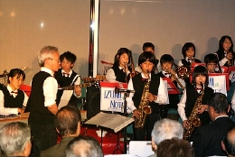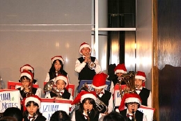 今回は本年最後のクリスマスコンサートとなりました。小さなサンタたち、千代田区立和泉小学校のジャズビッグバンド「IZUMINOTES(イズミノーツ)」の皆さんをお迎えして、ビッグバンドの演奏を楽しんでいただきました。