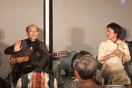 今夜は近江八幡を拠点として活動されているボランティアグループ「ホットライン」のお二人をお迎えしてのコンサートでした。お二人はご夫婦でもあり、卓志さん(ご主人)のギター、美季さん(奥様)のよし笛が実に息が合っており、曲の中で溶け合っているかのようでした。
