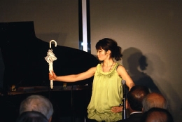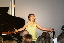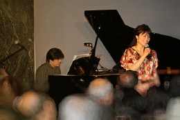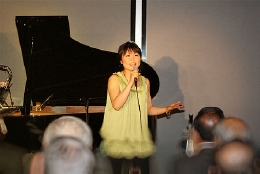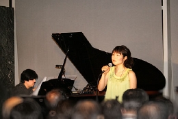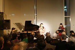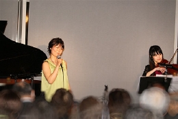 今夜はヴォーカルの岡村麻未さん、ヴァイオリンの巻渕麻利子さん、ピアノの桃井聖司さんをお迎えしてのミュージカル演奏です。岡村麻未さんのヴォーカルを中心に皆さんおなじみの曲が披露されました。