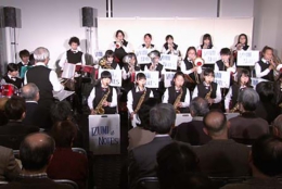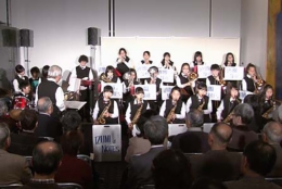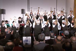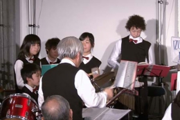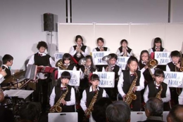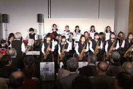 年配のお客様にとっては、お孫さんの演奏を見守っているような温かな視線もあって、終始和んだ様子でコンサートが進行しました。スタンダード・ジャズ、クラシック、演歌、そして曲の中に唱歌を交えるなど、バラエティに飛んだ曲構成で実にエネルギッシュ。子供たちを指導されている長岡節先生の指揮の下、寒さを吹き飛ばす熱い演奏でわたしたち全員が元気を貰ったようなコンサートでした。
