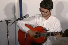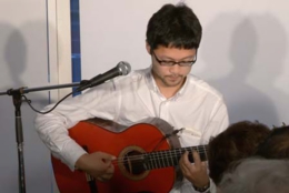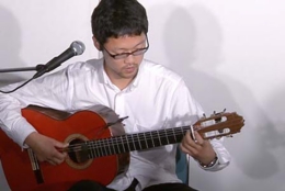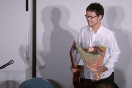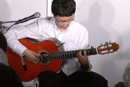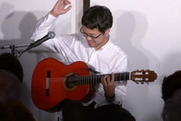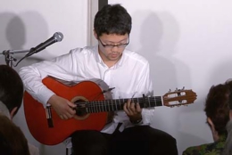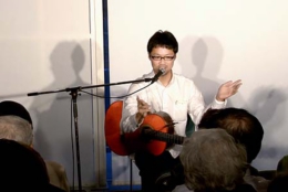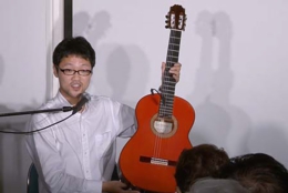 今宵は、20歳から25歳まで、本場スペインでフラメンコ・ギターの勉強をされた大山勇実さんをお迎えして、ギター一本でおもにフラメンコ曲を味わって頂くコンサートです。口べたでとても緊張されているとのことでしたが、フラメンコ音楽になじみのないお客様にも、わかりやすく曲の解説をしていただきました。