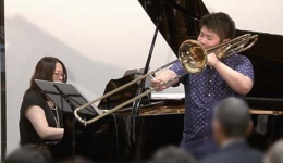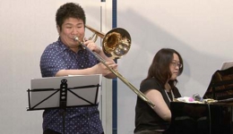 コンサート当日は、曇り空でしたが最高気温が20℃を下回るという過ごしやすい一日となりました。目前に控えた梅雨を吹き飛ばし、一気に夏に突入するような意気込みでコンサートに出演していただくのは、かねてより出演を熱望されていた日本フィル交響楽団の主席トロンボーン奏者・藤原功次郎さんです。