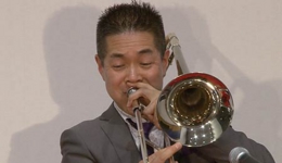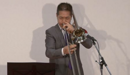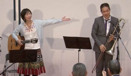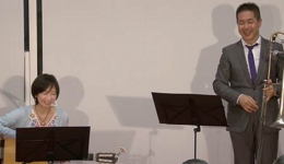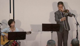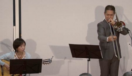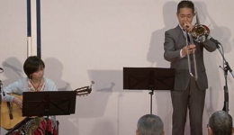 トロンボーンとギターのデュオは、212回を重ねる弊社コンサートでも初の組み合わせです。トロンボーンは深田 悟さん、ギターは志賀 由美子さん。深田さんの温かみのある演奏とこれに相まった曲解説や楽器の説明のおかげで、とてもリラックスできてより音楽を楽しむことができました。志賀さんは二人しかいない日本の女性ジャズギタリストのうちのお一人とのこと。深田さんのトロンボーンに寄り添った演奏だけでなく、シャンソンの「Autumn Leaves(枯葉)」をジャズにアレンジした演奏では自由にのびのびと華麗な演奏が光っていました。
