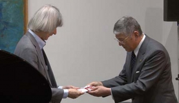 また、今回はコンサート終了後に障害のある子供たちのためのコンサート活動を行っておられる公益財団法人 日本フィルハーモニー交響楽団の松本克巳様に寄付の贈呈式が行われました。御礼ということで、バイオリンで演奏してくださった「タイスの瞑想曲」がとても胸を打つものでした。ありがとうございました。