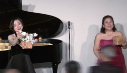 さて、今宵はソプラノ歌手の長島史枝さん、中村順子さんのお二人とピアノ伴奏に澤田美穂さんをお迎えしてのコンサートです。沖縄の民謡、日本の歌、ヘンデル、ロッシーニ、モーツァルト、ベッリーニそしてプッチーニのオペラの曲を独唱と二重唱で楽しんでいただきました。