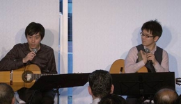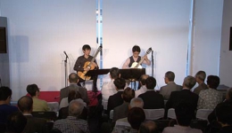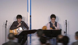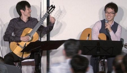さて、今回は映画音楽を主体に演奏活動をしている「シネマティック・ギター・デュオ」のお二人、山崎拓郎さんと森井英朗さんのお二人をお招きしました。山崎さんには平成26年にも別の方とのデュオでご出演頂いています。今回のコンサートでは、誰も知らない人がいないであろう有名な映画音楽のオンパレードでした。