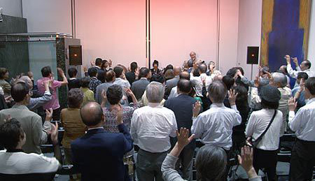 お客様と一緒に唄を歌ったり、全員立って手を動かして演奏に参加するなどライブならではの楽しさもたっぷりありました。今回演奏していただいた曲は江戸時代から明治にかけてのものが大半でした。音楽というのは面白いもので、沖縄の伝統的な民謡を聴いていると、南国にいるような気持にさせられるから不思議です。