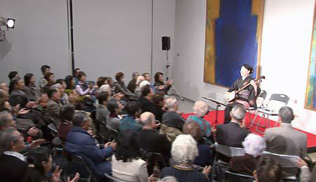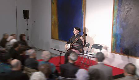 コンサート当日は寒の戻りで、雪が降るのではないかとの予想もあり、雨風もある寒い一日となりました。そんな日にも関わらず、いつものように多くの熱心なお客様にお越しいただきました。今回は、もちろん当コンサートで初めてとなる瞽女(ごぜ)唄の三味線による弾き語りです。お招きしたのは高校生のときに瞽女唄に出会って「この唄はなんだ!」と衝撃を受け、以来瞽女唄を演奏されている三味線の月岡祐紀子さんです。