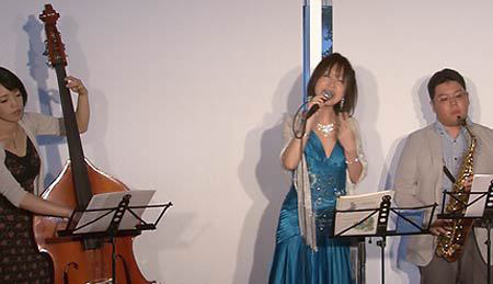 演奏曲目はどれもみなさんご存じのスタンダードナンバーばかりで心地よく、聴く耳の肥えたお客様にもおかのひろみさんのヴォーカルはうまいと感動を与える歌声でした。それぞれの楽器のソロパートも見せ場を作り、お客様をうならせます。