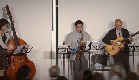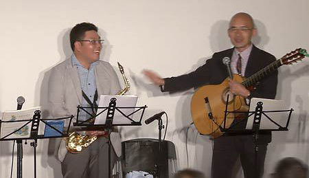 みなさん、経歴や年齢もまちまちだそうで、現役の看護師のおかのさんをはじめ、ギターの後藤正治さんもご自身の作成したフリーソフトがCERN(欧州原子核研究機構)の大型加速器実験に採用された経歴の持ち主で実に異色です。また、アルトサックスの岡野大夢さんはなんと19歳だそうで、その堂々たる雰囲気とのギャップに驚かされます。そんなみなさんを結びつけているのが音楽です。音楽がさまざまな垣根を越えてハーモニーを生み出す力を持っていることをまざまざと見た思いです。