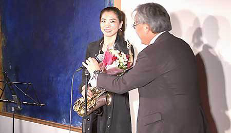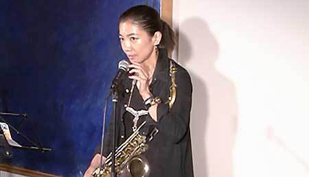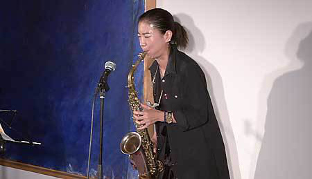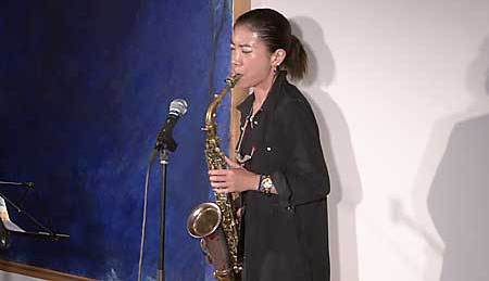 さて、今宵はアルトサックス奏者の纐纈雅代(こうけつまさよ)さんをお招きし、コンサートとしては珍しいソロ演奏を楽しんでいただきました。纐纈さんによれば、普段はオーケストラやデュオやトリオ、そしてドラムやベースを加えたカルテットでの演奏が大半で、サックスの独奏は一部のコアなジャズマニア向けに行っているのだそうです。その意味で私たちは貴重な体験をできたと言えるかと思います。曲目は、皆様になじみのあるジャズのスタンダードナンバーを中心に曲が構成されました。