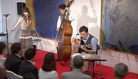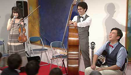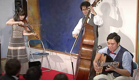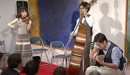 今回は、「MASH弦楽団」の皆さんをお招きして、ジプシージャズやクラシックを楽しんでいただきました。1940年代にアメリカからフランスにジャズが伝わりましたが、ジプシージャズはヴァイオリンなどクラッシック系の音楽と混じり合い、そしてジプシー(ロマ)の人たちが演奏することによって生まれたフランス発祥のジャズです。MASH弦楽団の皆さんは、このジプシージャズを広めようと活動を展開しています。