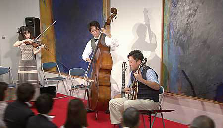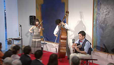 MASH弦楽団の皆さんは、今年の5月のゴールデンウィークのときに、自分たちの演奏レベルがどう評価されるか知るためにフランスに行かれたそうです。パリやリヨンなどで4回ほどライブを行いました。そして、パリでピカソやゴッホなどがお酒を飲んでいたという歴史あるLapin Agile(ラパン・アジル)というお店で、「愛の賛歌」を演奏したのですが、そのときはスタンディング・オベーションが起きたそうです。ジプシージャズの本場で大変な好評を博したその実力は、今回の弊社のコンサートでも余すところなく発揮されていました。