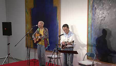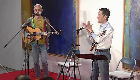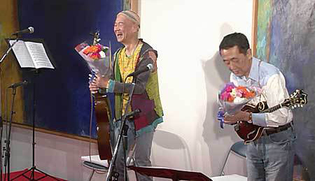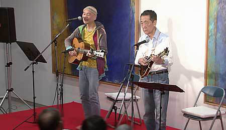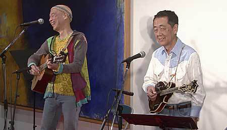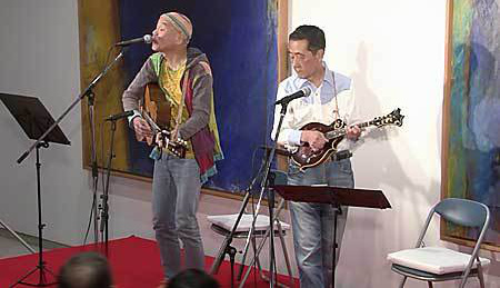 ヴォーカル・ギター担当の真思惟(まーしい)さん、そしてフラットマンドリンのAK ジョッシュさんのお二人です。コンサートは、来場のお客様が青春時代を迎えた時代にタイムスリップしたかのような雰囲気に包まれていました。皆様が一人一人思い出に浸っておられるようでした。