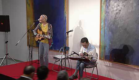 おなじみの曲が多く、皆様よく耳にされているはずですが、真思惟さんの穏やかでやさしい歌声で耳に入るせいか、歌詞の内容がよりはっきりと伝わってきたように思います。年輪を重ねたお二人ならばこそ作り出せる音楽空間です。そして、あたかもサプライズのように、江戸っ子のAK ジョッシュさんによる落語の小咄があり、会場が気の利いたオチにどっと笑いが沸き起こりました。音楽とは異なりますが、もっと聴きたいと思われた方も多かったのではないでしょうか。